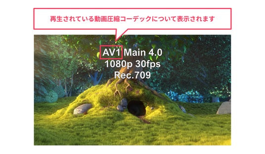 再生環境が次世代コーデックに対応しているかは、以下の検証動画を通じてご確認いただけます。Webブラウザからアクセスして検証動画を「お気に入り」に登録いただいた上で、アプリ内で検証動画を再生いただけます(図7)。