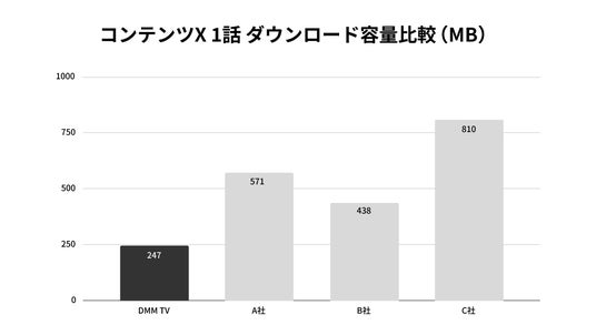 図5:コンテンツX 1話における大手国内配信事業者とのダウンロード容量比較