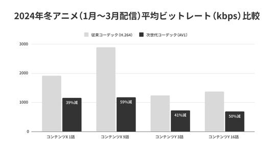 図1:2024年冬アニメ(1月~3月配信)特定コンテンツでの平均ビットレート比較