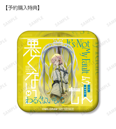該当商品を1個ご注文ごとに、予約購入特典として「MILGRAM 第二審シングル ムウ『悪くないもん』ジャケットスクエア缶バッジ AMNIBUS特典」を付属いたします。