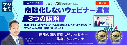 マジセミ株式会社は「【再放送】商談化しないウェビナー運営、3つの誤解」というテーマのウェビナーを開催します。