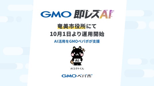 GMOインターネットグループのGMOペパボ株式会社(代表取締役社長:佐藤 健太郎、以下「GMOペパボ」)が提供するお問い合わせ対応AI導入支援サービス「GMO即レスAI」(URL:https://sokuresu.ai/)が鹿児島県奄美市役所に採用されました。2024年10月1日より奄美市公式キャラクター「コクトくん」をモデルにした『AIコクトくん』(URL:https://miibo.jp/chat/0ece1697-f6a3-4526-a3f4-8fe095cb69b1191a110715d41?name=AIコクトくん)として、ごみ・リサイクルに関する問い合わせに生成AIを用いて24時間365日対応しています。