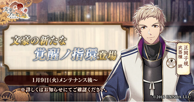 合同会社EXNOA(本社:東京都港区、CEO:村中 悠介、URL:https://games.dmm.com/)が運営するDMM GAMESは、1月9日(火)より、女性向け文豪転生シミュレーションゲーム「文豪とアルケミスト」において、正岡子規の新たな「覚醒ノ指環」を追加いたしました。