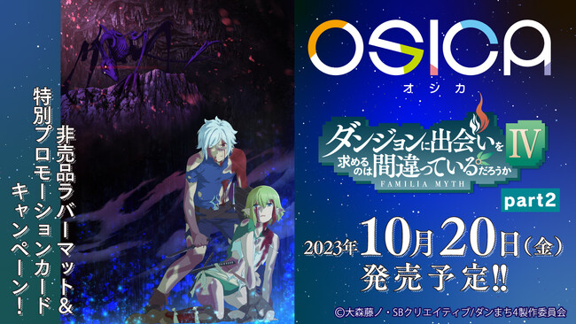 株式会社ムービック(本社:東京都豊島区、代表:高橋竜)から、人気アニメが続々登場のトレーディングカードゲーム(以下、TCG)「OSICA(オシカ)」が発売中。「自分の推しキャラで相手のハートを奪う」。作品・キャラクターへの愛を何より大切にしたカードゲーム。その最新弾「ダンジョンに出会いを求めるのは間違っているだろうかIV」part2が2023年10月20日に発売します。
