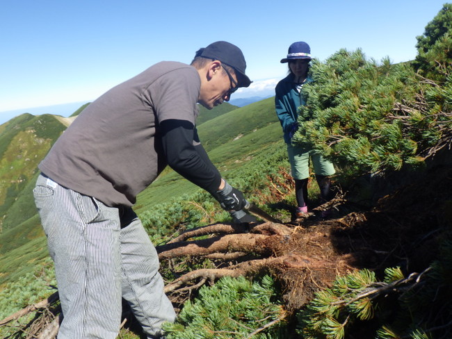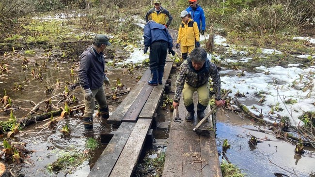 言わずと知れた日本百名山の白馬岳や雨飾山をかかえ、登山者も多く訪れるエリア。木道や階段の修繕作業を行なっているが、毎年できる整備作業には資金面で限界があり、なかなか思うように進んでいない状況。