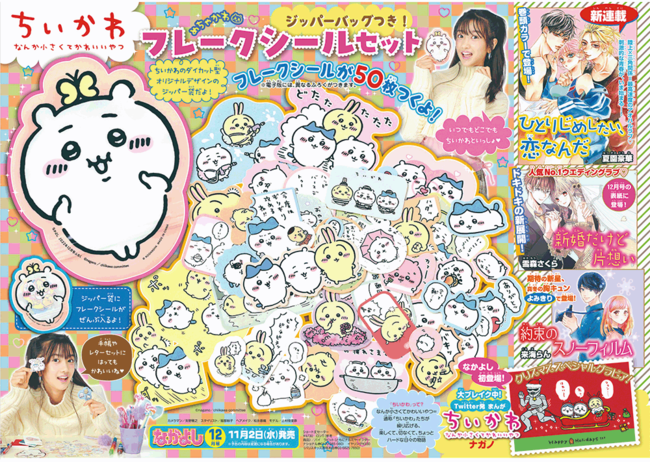 その可愛さで今年日本中を席巻した『ちいかわ なんか小さくてかわいいやつ』(ナガノ)が「なかよし」の付録に登場!その名も「ジッパーバッグつき! めちゃかわ フレークシールセット」。