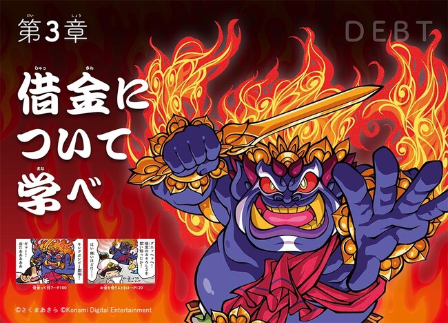 本書では、ゲーム内で物件を購入したり、資産を増やしたりしていくなかで欠かせない知識「お金・経済のしくみ」について、お札や硬貨、キャッシュレス決済、税金、投資、年金、保険など100個のテーマを収録。お金・経済のさまざまな知識を解説しています。学習のおさらいができるマンガ・クイズ、お金・経済にまつわる歴史人物・スポット紹介ページ、おこづかい帳なども収録。とくに4コママンガの収録数は、前作『47都道府県地理・歴史攻略』より50%以上増量予定だったとのことで、子どもたちが楽しく学ぶきっかけになると期待が寄せられていましたが、はたしてキングボンビーは本書でどんな暴走をしているのでしょうか。この結末は、ぜひ本書を実際に読んで、確かめてみてください。