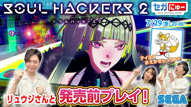 さらに、「おえかきレッスン」のコーナーでは、セガ・ソニックチームのVTuber社員「速音トモコ」と一緒に、MCとゲストがソニックの相棒である「テイルス」を描きます。速音トモコさんによるポイント講座や、ペイント動画もご期待ください。