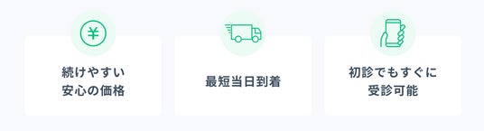 通院や薬局でのお薬処方に長時間待つ必要はありません。ご自宅やコンビニなどお好きな場所、お好きな時間にお薬が届きます。東京23区及び大阪市24区ではバイク便による処方薬の配送サービスも提供しています。対象地域にお住まいの方は、診察、追加配送申請後の決済完了時から3時間程度で処方薬の受取りが可能です。