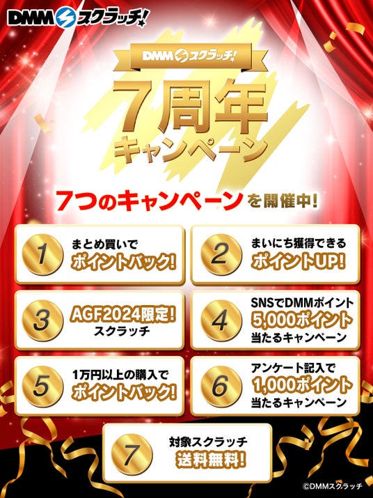合同会社DMM.com(本社:東京都港区、会長 兼 CEO亀山敬司、https://dmm-corp.com/ 以下DMM )は、ハズレなしのオンラインくじサービス「DMMスクラッチ」をリリースしてから2024年11月で7周年を迎えます。