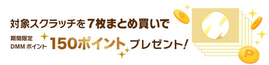 対象スクラッチを1回の購入で7枚以上まとめてご購入いただいた場合、もれなく150ポイントをプレゼントいたします。