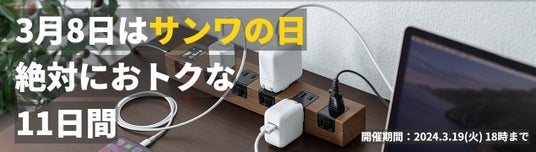 パソコン・スマホ周辺機器メーカー サンワサプライ株式会社(本社:岡山市北区田町1-10-1、代表取締役社長 山田和範)が運営している直販サイト『サンワダイレクト』では本日3/8(金)10時より「サンワの日」を開始いたしました。