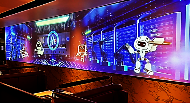 また、本システムのスムーズな導入に寄与したパナソニック コネクト アジアは、パナソニック製プロジェクターを用いた空間演出を提供する映像ソリューションを同店へ導入しました。本ソリューションには、設置・施工から放映コンテンツの制作、さらにコンテンツ配信システムのターンキーソリューションの提供までが含まれます。店舗デザインの初期段階から投影テストなどに参画し、より効果的な店舗空間のプロジェクションマッピング演出に寄与しています。