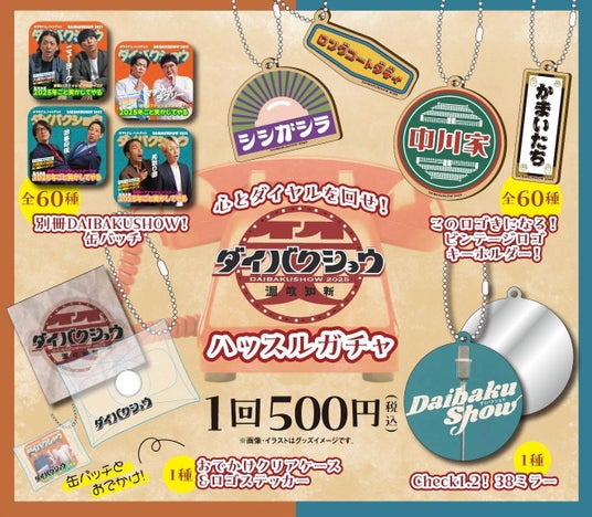 この度、12月30日(月)東京ガーデンシアターにて開催いたします、YOSHIMOTO presents『DAIBAKUSHOW 2025』のオフィシャルグッズ情報が決定しました。 今回のグッズは、イベントテーマである「温故知新」を体現する「ブラウン管Tシャツ」や「メンコ」など、懐かしさと新しさが融合したラインナップです。また、会場に足を運べない方も楽しめるよう、「DAIBAKUSHOW 2025 オンラインくじ」も同時展開いたします。総勢約60組のステージネタに加え、 DAIBAKUSHOW2025オフィシャルグッズで、年末のお笑いフェスティバルをさらに盛り上げます。