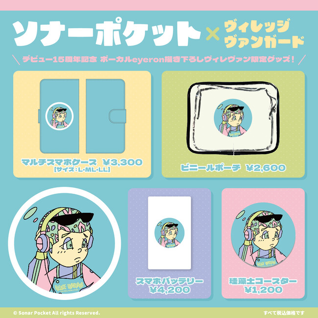 2023年6月7日(水)より、メジャーデビュー15周年を迎える【ソナーポケット】のボーカル"eyeron"が記念に描き下ろしたイラストを使用した限定グッズがヴィレヴァンに登場!!期間限定のオンライン受注販売のみになりますのでお見逃しなく!