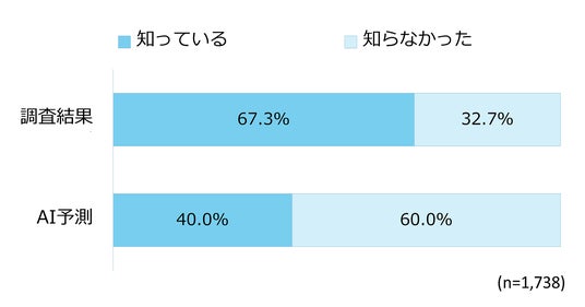 ・ 認知度:AIはアンケート対象者の40%が「ふるさと納税ポイント付与廃止」を認知していると予測。実際は67.3%と、予測と大幅な差があることが判明。