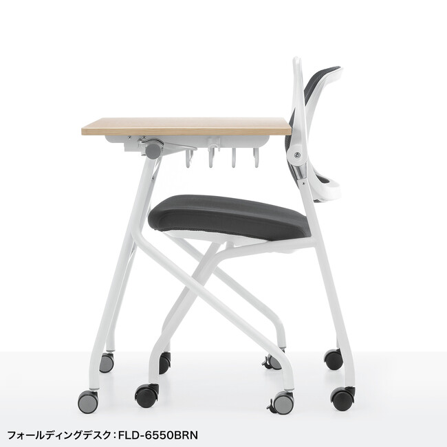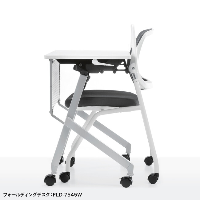 サンワサプライ製のフォールディングデスク「FLD-6550シリーズ」や「FLD-7545W」と組み合わせることで、デスクもチェアもより省スペース化を図れ、おすすめです。