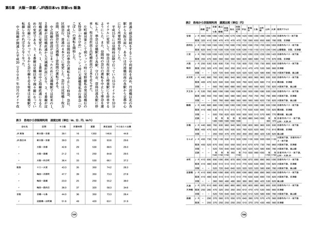 官鉄開業から京阪登場まで/新京阪の開業/昭和の初めから終戦まで/急電再開と特急の増発/新快速の登場/1992年時の京阪間の状況/各社のダイヤ/京阪間利用はどれが便利か/新快速が130km運転を開始/阪急、京阪はスピード競争から中間駅の利便向上に転じた