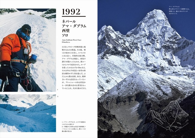 本書は、『垂直の記憶』で綴られたヒマラヤの記録についても、豊富な写真と当時を回顧する短文を添えて再構成。巻末には、山野井さんの登攀志向に迫る対談やインタビューの再録、加えて、45年にわたる膨大な登山歴から主要なものを抽出した登攀年譜を収録します。