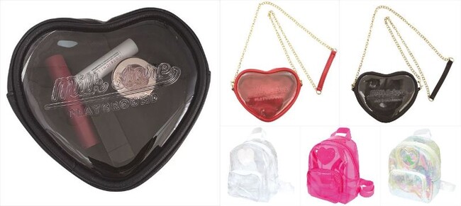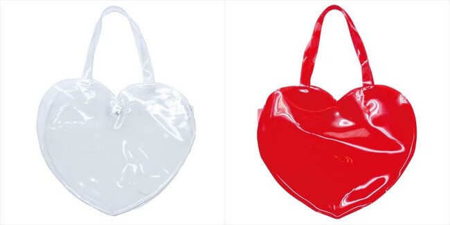 有限会社ジップコーポレーションより、中身の見えるクリア素材のハート型のポーチとカバンが登場。