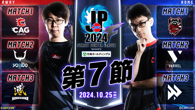 次回、「ストリートファイターリーグ: Pro-JP 2024」は、10月29日(火)18時40分から「Division S 第8節」を「CAPCOM Fighters JP」の公式YouTube、Twitchチャンネルにて配信します。