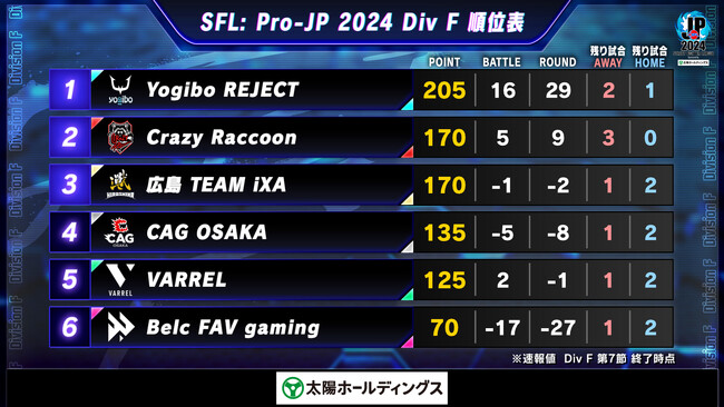 10月25日(金)に行われた「ストリートファイターリーグ: Pro-JP 2024 Division F 第7節」の試合速報をお知らせいたします。