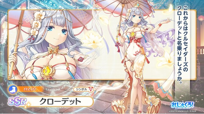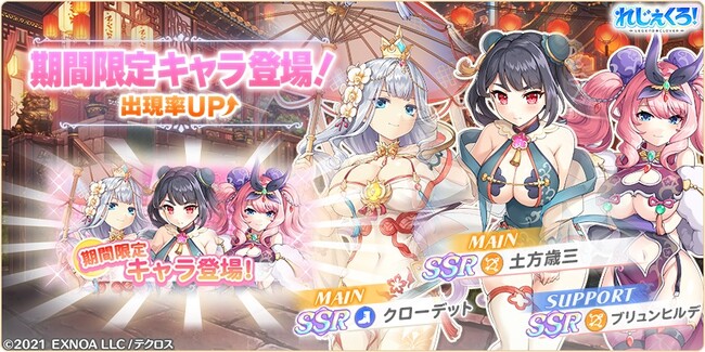 合同会社EXNOA(本社:東京都港区、CEO:村中 悠介、URL:https://games.dmm.com/)が運営するDMM GAMESにおいて、真の英雄となる王道ファンタジー『れじぇくろ!~レジェンド・クローバー~』(https://www.legend-clover.net/)にて、クローデット、土方歳三、ブリュンヒルデが魅惑のチャイナドレス姿で登場!さらにイベント「歩む道は幾重にも交わりて」が開催!