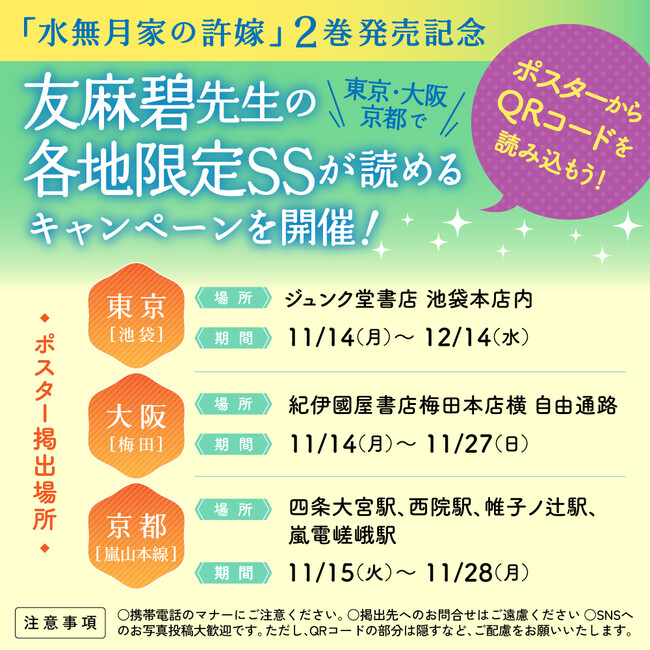 ☆小説2巻発売記念、【東京】【大阪】【京都】にて、各地限定書き下ろしSSが読めるポスターキャンペーン開催中☆