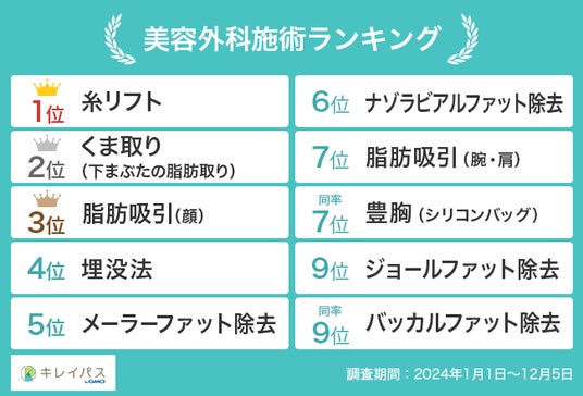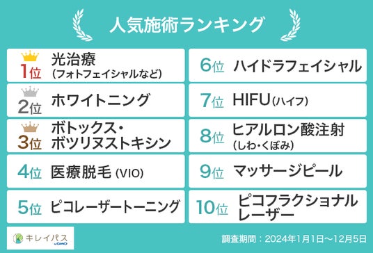 【「キレイパス byGMO」美容医療年間人気ランキング2024】