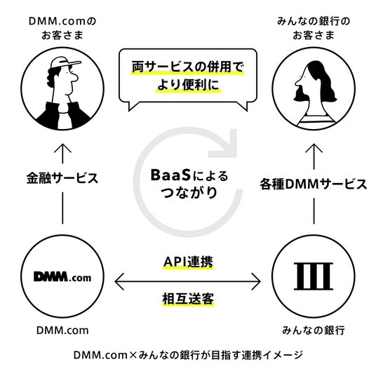 今般の基本合意は、みんなの銀行のBaaS事業とのアライアンスを通じて、DMMにおける銀行代理業の取得も視野に、DMMのプラットフォーム上でみんなの銀行の金融機能・サービスを活用することにより、新たな顧客体験の創造について検討を行うものです。双方のサービスを連携することで、ユーザーの利便性向上と、より満足いただける顧客体験の提供を目指してまいります。