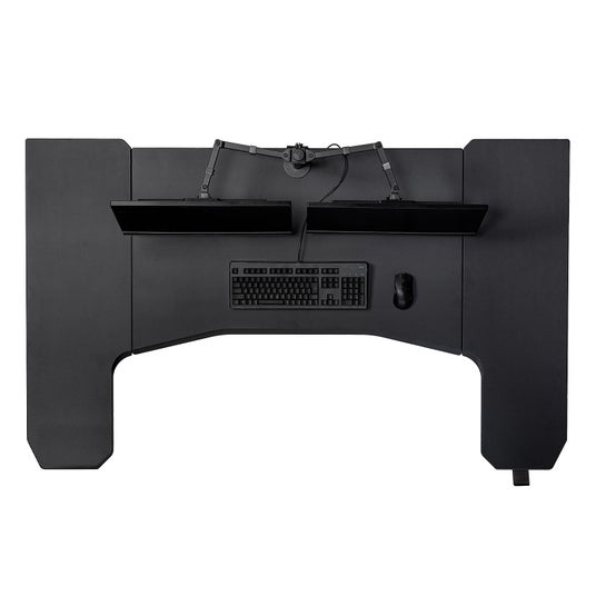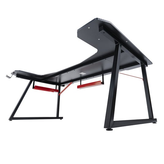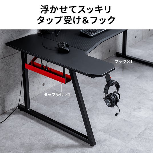 タップ受けとフック付きでクランプ製品にも対応した超大型コの字天板を採用したゲーミングデスク