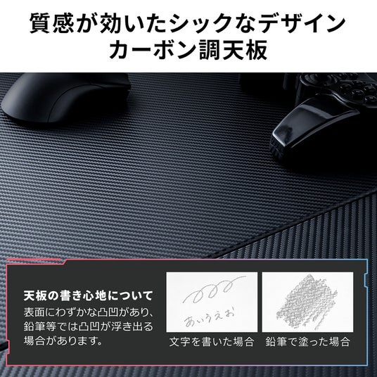 天板サイズは、幅180cm、奥行110cmでカーボン調天板を採用しています。
