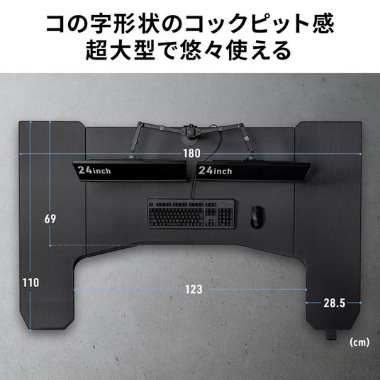 ・超大型天板を採用したコの字型ゲーミングデスクです。