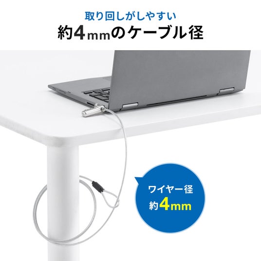 セキュリティワイヤー パソコン盗難防止 ケンジントン 3×7mm ダイヤル錠 4桁 スリムシリンダ コンパクトシリンダ