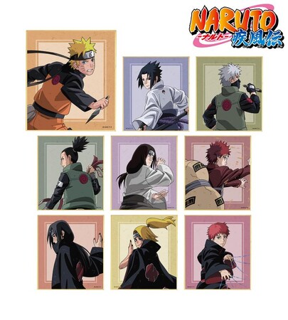 アニメイトで開催された「『NARUTO-ナルト- 疾風伝』20周年記念 アニメイトフェア」描き下ろしイラストのうずまきナルト、うちはサスケ、はたけカカシ、奈良シカマル、日向ネジ、我愛羅、うちはイタチ、デイダラ、サソリをメインにデザインしました。