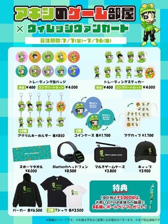 2023年7月7日(金)より、ゲーム実況で人気の【アキシのゲーム部屋】とヴィレッジヴァンガードの限定コラボグッズがオンラインストアにて発売決定!!期間限定の受注販売のみになりますのでお見逃しなく!