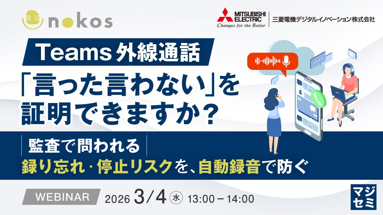 マジセミ株式会社は「Teams外線通話、「言った言わない」を証明できますか?」というテーマのウェビナーを開催します。