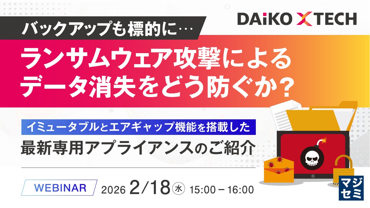 マジセミ株式会社は「バックアップも標的に…ランサムウェア攻撃によるデータ消失をどう防ぐか?」というテーマのウェビナーを開催します。