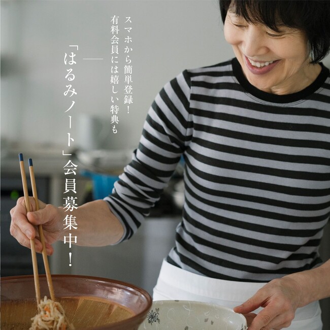 撮影の舞台裏やオフショット、限定動画、オンラインイベントなど、栗原はるみさんの魅力と誌面の内容をより深くお届けするオンライン会員サービス「はるみノート」も会員が続々。無料会員の方には、メールマガジンやイベント情報をお届け。有料会員にはうれしい特典をご用意しています。