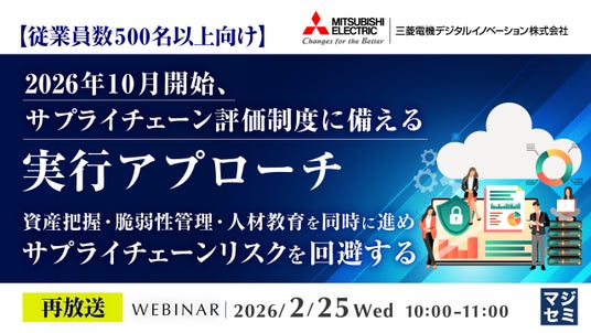 マジセミ株式会社は、大変好評をいただいた「【再放送】【従業員数500名以上向け】2026年10月開始、サプライチェーン評価制度に備える実行アプローチ」というテーマのウェビナーを再放送します。