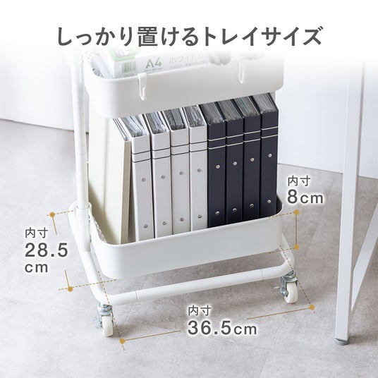 ワゴンの広さとキャスター部の組み合わせは隙間収納にも最適で、限られたスペースを有効活用できます。使い勝手の良さが際立つ一品です。