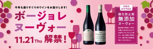 イオンはボージョレ・ヌーヴォーの解禁日となる2024年11月21日(木)、全国約3,000店舗※1と、イオンの公式ワイン通販サイト「AEON de WINE」で「2024年ボージョレ・ヌーヴォー」を発売します。今年は「コラン・ブリセ ボージョレ・ヴィラージュ・ヌーヴォー酸化防止剤無添加」「シャトー・ド・ラ・リゴディエル ボージョレ・ヌーヴォー」が「トロフェ・リヨン ボージョレ・ヌーヴォー コンクール」※2で金賞を受賞しました。