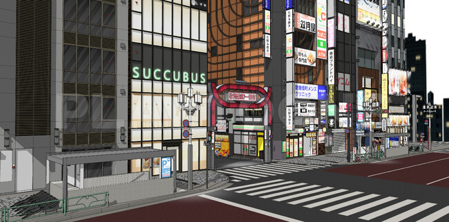 2.歌舞伎町の実在しそうなクオリティの高いお店のアセットを使った1コマ