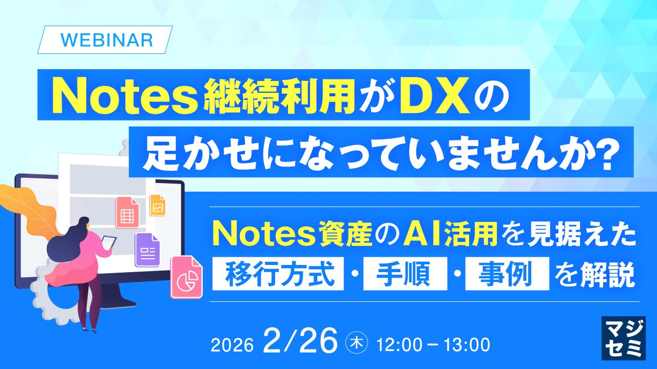 マジセミ株式会社は「Notes継続利用がDXの足かせになっていませんか?」というテーマのウェビナーを開催します。