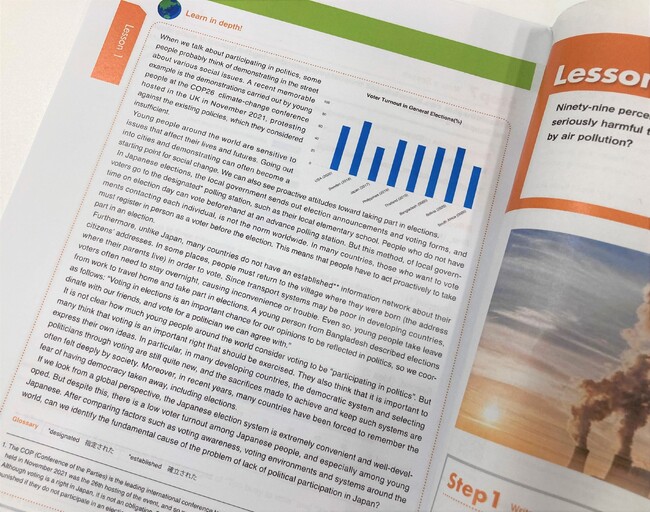 SDGsに関連した内容なども取り上げることで、英語科の授業だけではなく、探究活動や課外学習の事前事後学習としても使える教材です。