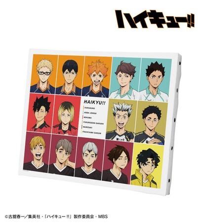 日向翔陽、影山飛雄、月島蛍、及川徹、岩泉一、黒尾鉄朗、孤爪研磨、木兎光太郎、赤葦京治、宮侑、宮治、北信介、角名倫太郎、佐久早聖臣のユニフォーム姿、日向翔陽、影山飛雄、月島蛍、及川徹、岩泉一、黒尾鉄朗、孤爪研磨、木兎光太郎、赤葦京治のセカンドユニフォーム姿のイラストをキャンバスボードに仕上げました。