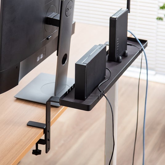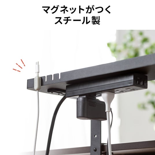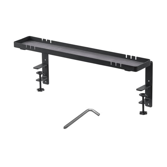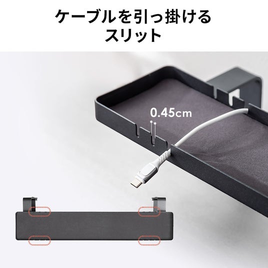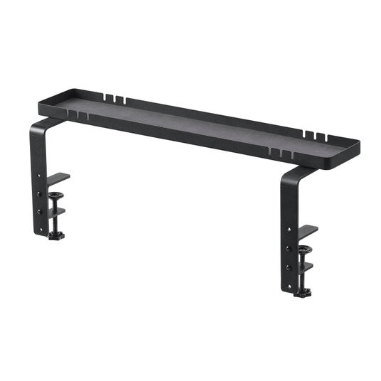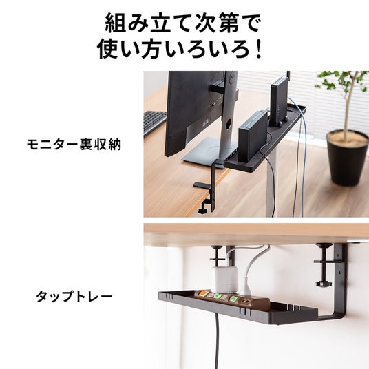 小物トレー クランプ取り付け モニター下収納 ケーブルガイド付き 机上台 机下収納 タップ収納 スチール製