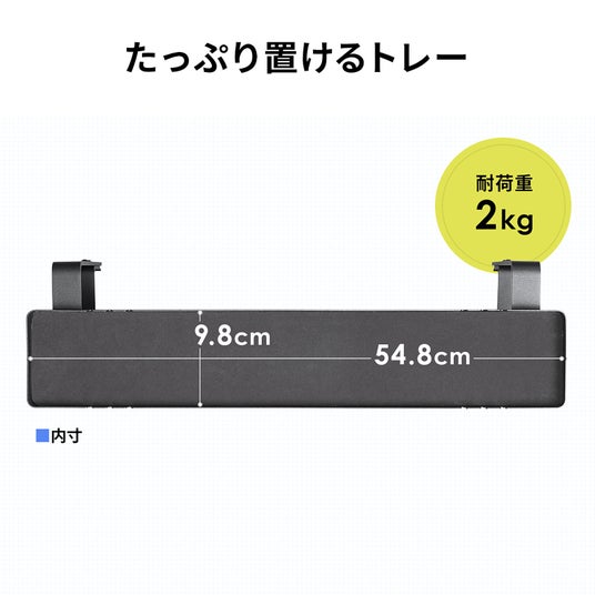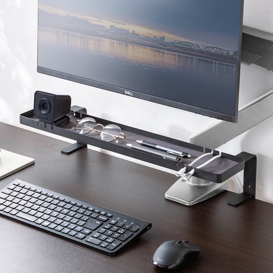 モニタ下の空きスペースを活用するための小物トレーです。普段は使いにくいエリアを収納スペースとして利用することで、デスク周りをすっきりと整理整頓できます。