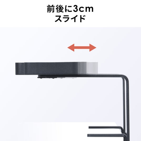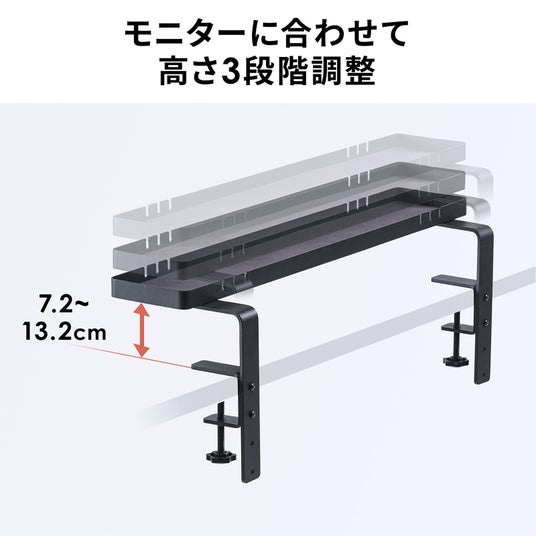 リモコンやティッシュなどの小物を設置でき、前後に3cmと高さも3段階に調整可能なディスプレイスタンド