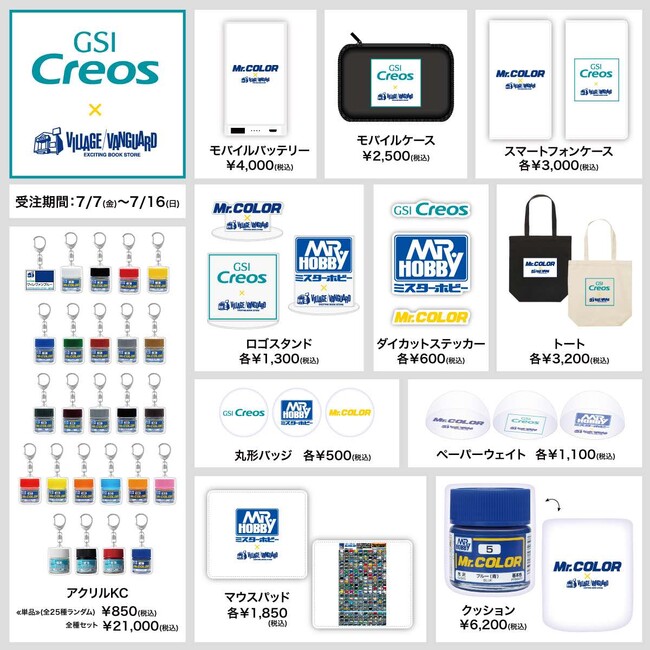 模型好きなら誰もが知っている、GSIクレオスホビー部が展開するホビーブランド『Mr.HOBBY』と模型塗料『Mr.カラー』のロゴデザインを中心にグッズ化。